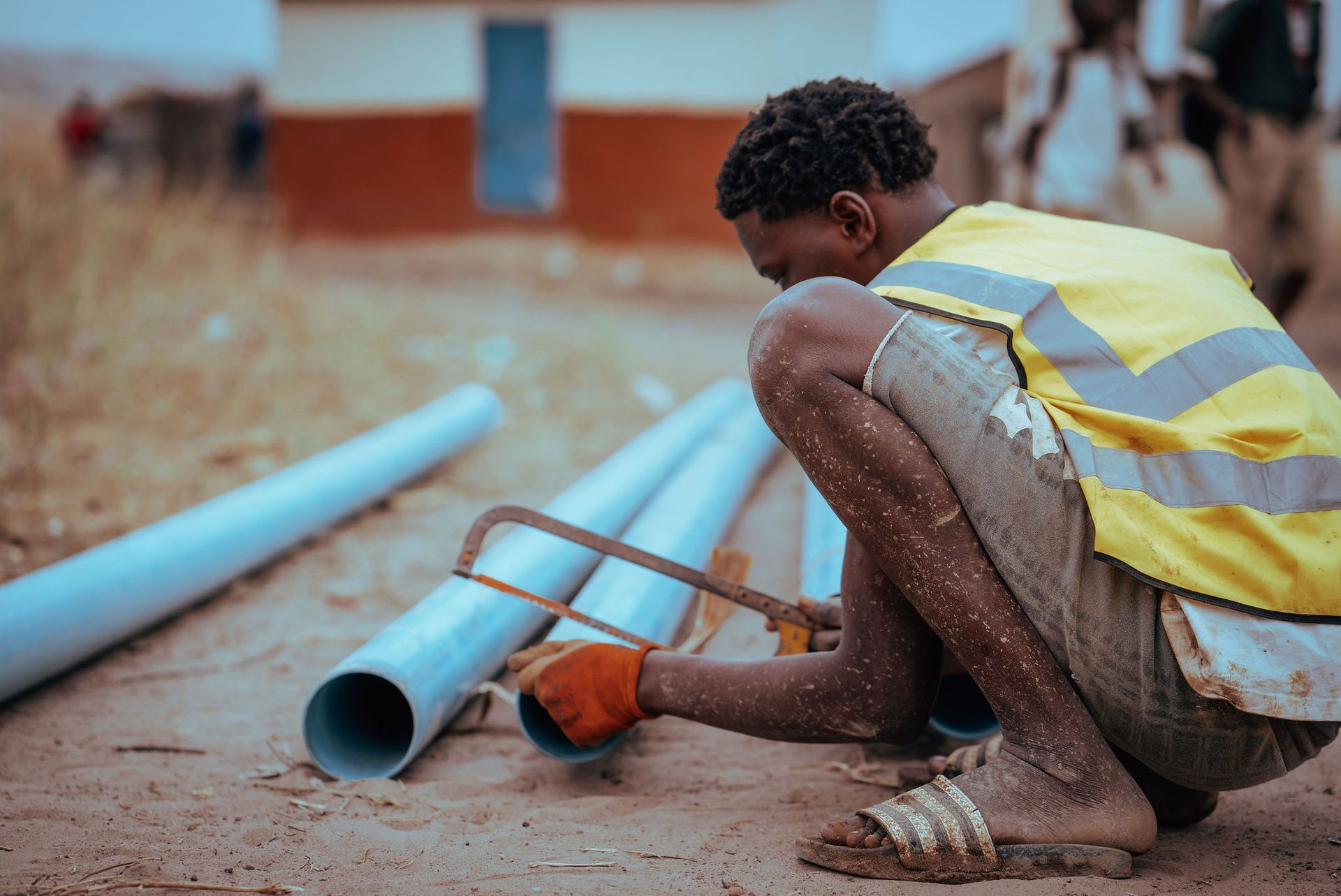 Het team gaat daarna aan de slag met het bouwen van de pompinstallatie, het installeren van de zonnepanelen en het omheinen van de watervoorziening, zodat de apparatuur veilig opgeborgen is...